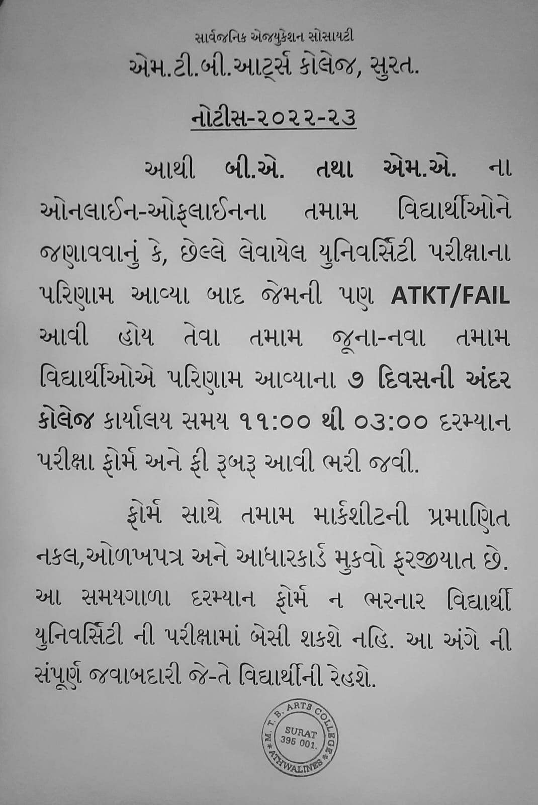 ATKT/PURAK Examination